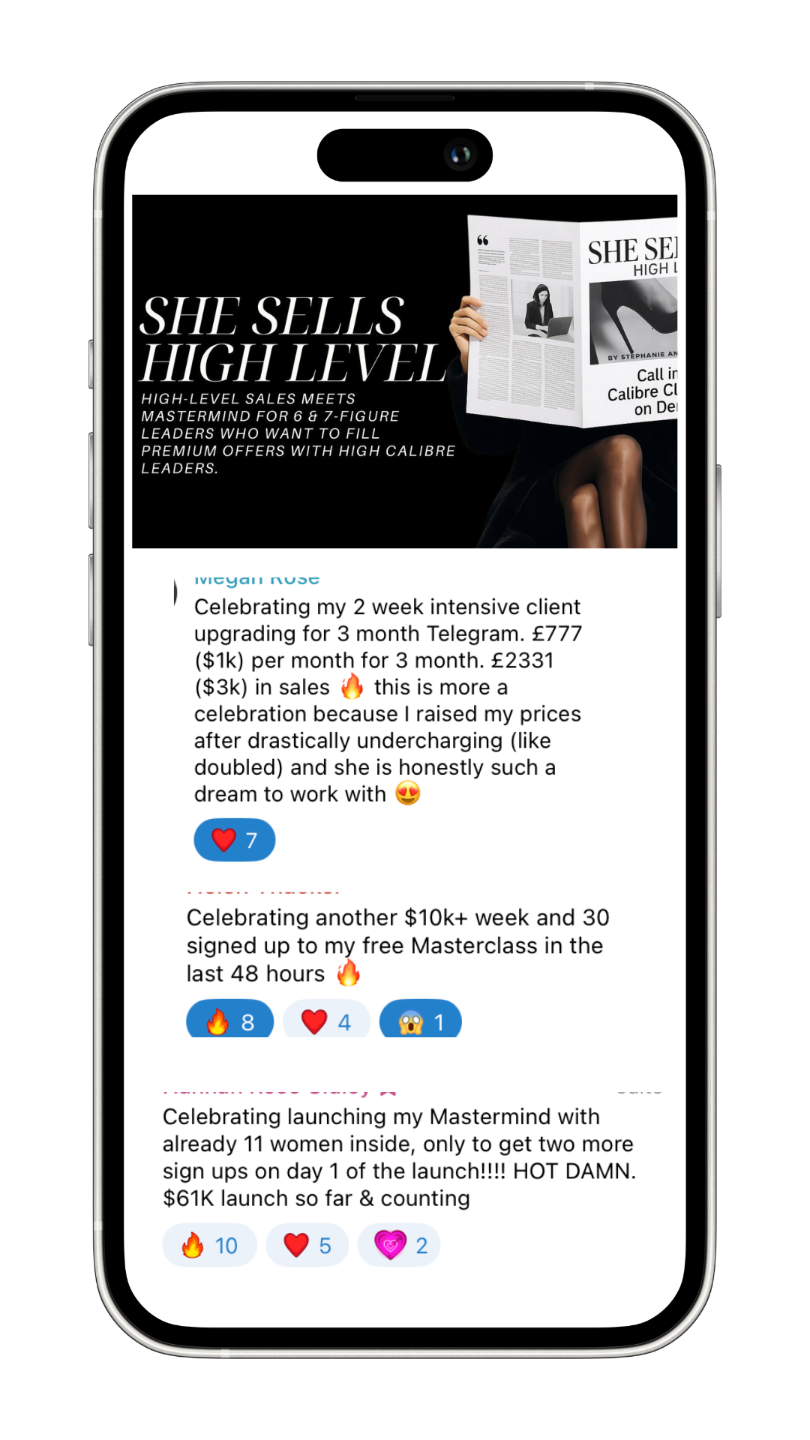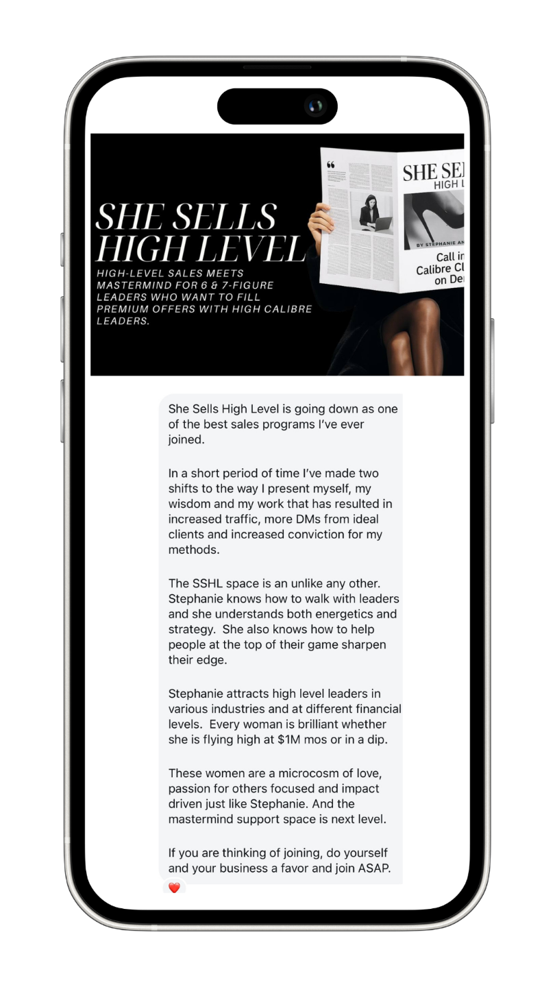 Inside She Sells High Level, we recalibrate your brand, your message, and your energy to match the power you already hold and activate high calibre leaders into your spaces by the masses.