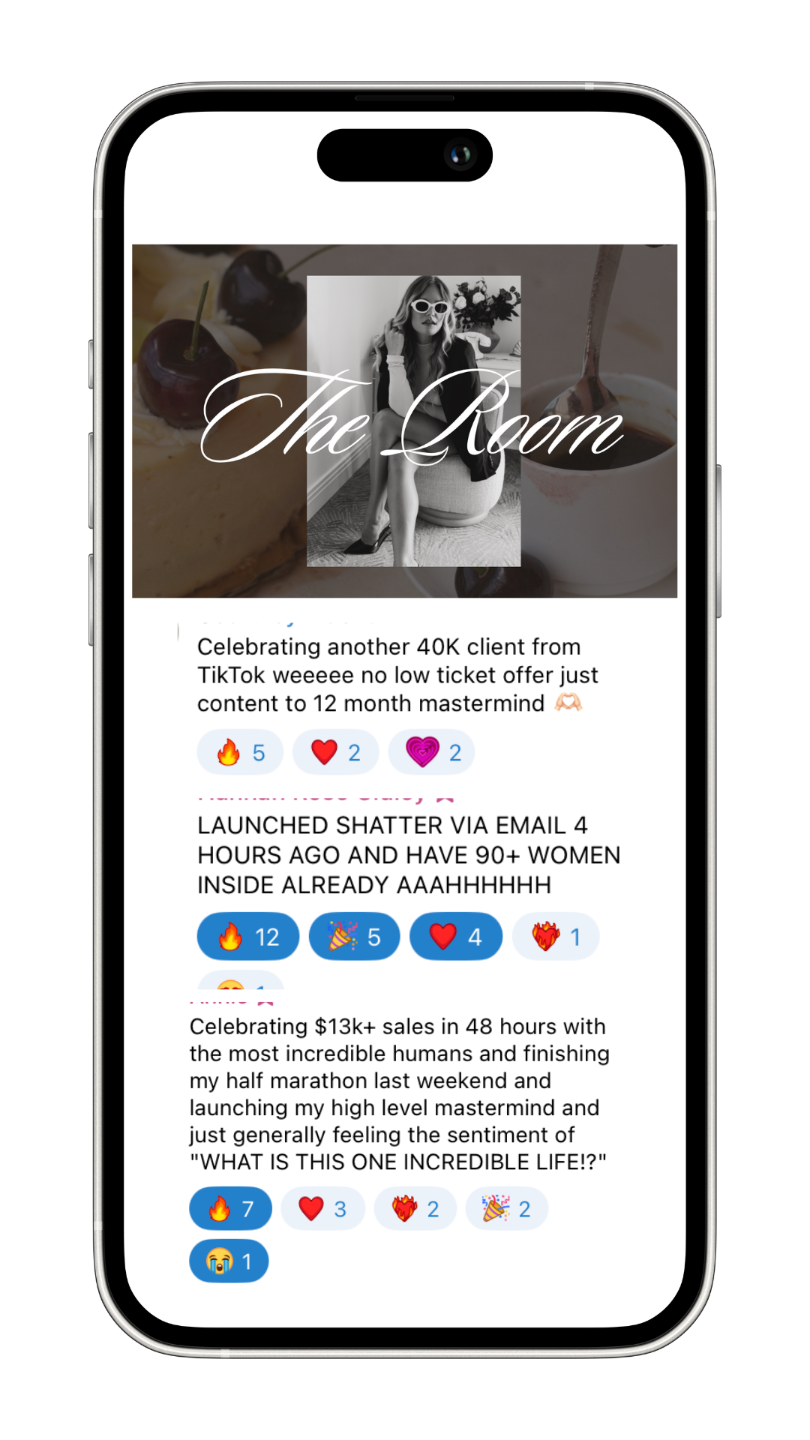 Your high-calibre network, right in your pocket. Connect with the elite women inside The Room, share wins, ask questions, mastermind brainstorm, and receive audio riffs from Stephanie between calls. PS. This is not a mastermind chat where it's crickets, these queens are masterminding non stop.